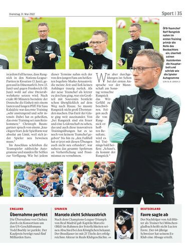 Am Schauplatz. Das erste Training von Ralf Rangnick als ÖFB-Teamchef kam in Bad Tatzmannsdorf unterschiedlich an. Von Michael Lorber