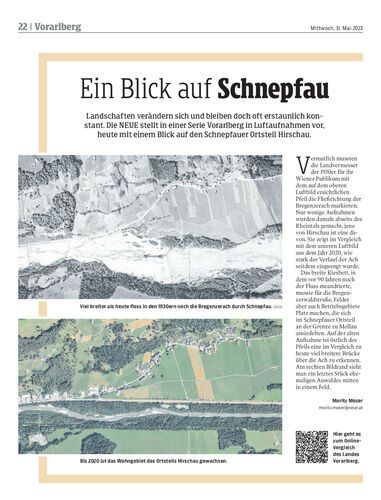 Landschaften verändern sich und bleiben doch oft erstaunlich konstant. Die NEUE stellt in einer Serie Vorarlberg in Luftaufnahmen vor, heute mit einem Blick auf den Schnepfauer Ortsteil Hirschau.