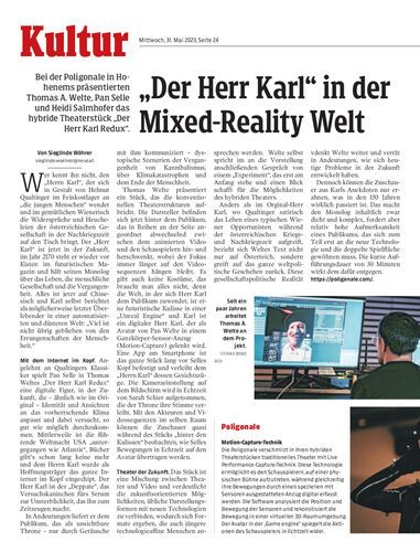 Bei der Poligonale in Hohenems präsentierten Thomas A. Welte, Pan Selle und Heidi Salmhofer das hybride Theaterstück „Der Herr Karl Redux“.