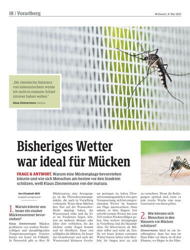 Frage & Antwort. Warum eine Mückenplage bevorstehen könnte und wie sich Menschen am besten vor den Insekten schützen, weiß Klaus Zimmermann von der inatura.