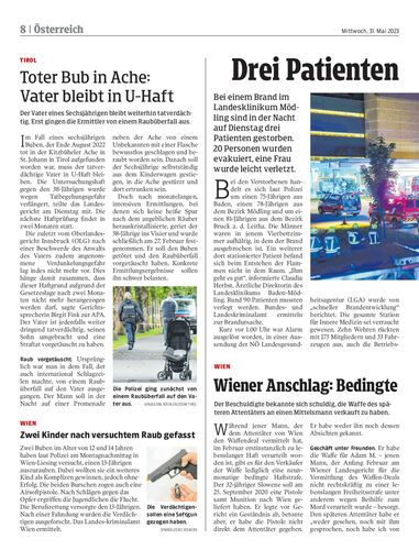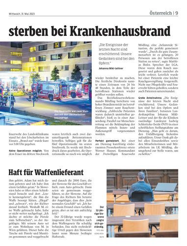 Bei einem Brand im Landesklinikum Mödling sind in der Nacht auf Dienstag drei Patienten gestorben. 20 Personen wurden evakuiert, eine Frau wurde leicht verletzt.
