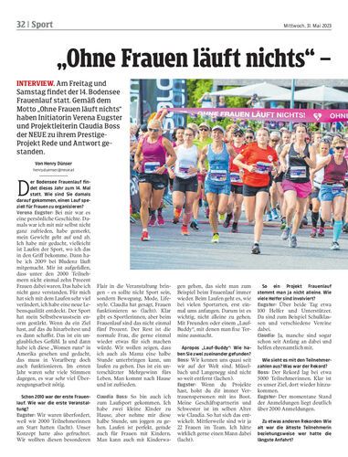 Interview. Am Freitag und Samstag findet der 14. Bodensee Frauenlauf statt. Gemäß dem Motto „Ohne Frauen läuft nichts“ haben Initiatorin Verena Eugster und Projektleiterin Claudia Boss der NEUE zu ihrem Prestige-Projekt Rede und Antwort gestanden.