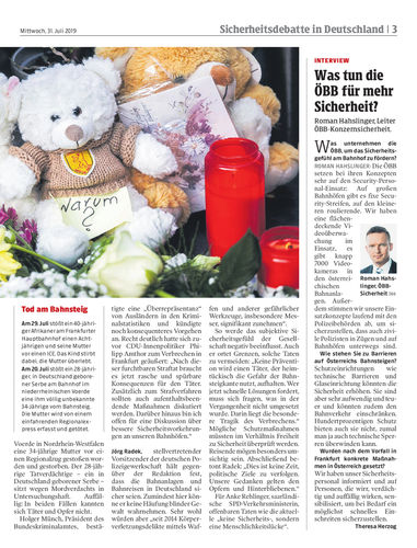 Thema. Entsetzen nach der Tat eines 40-jährigen Eritreers am Frankfurter Hauptbahnhof. Dabei flammt auch die Debatte um Sicherheit an deutschen Bahnhöfen und um das Aufenthaltsrecht wieder auf. Seiten 2/3, 7 APA/AFP/DPA