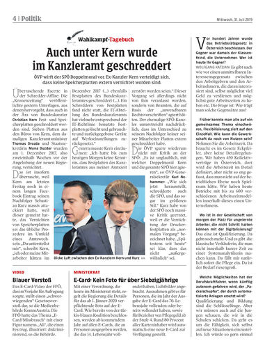 ÖVP wirft der SPÖ Doppelmoral vor. Ex-Kanzler Kern verteidigt sich, dass keine Speicherplatten extern vernichtet worden sind.