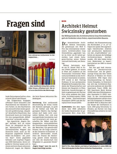 Architekt Helmut Swiczinsky gestorben
