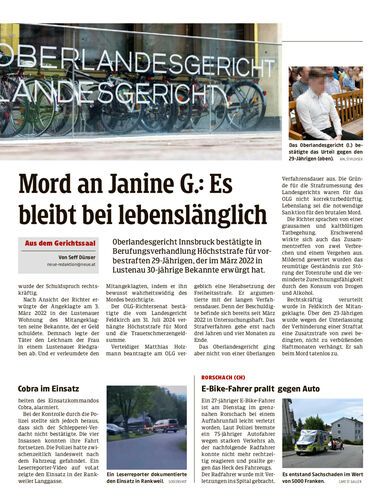 Oberlandesgericht Innsbruck bestätigte in Berufungsverhandlung Höchststrafe für vorbestraften 29-Jährigen, der im März 2022 in Lustenau 30-jährige Bekannte erwürgt hat.