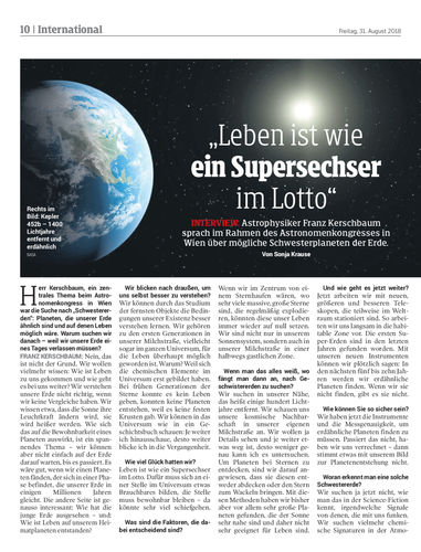 Astrophysiker Franz Kerschbaum sprach im Rahmen des Astronomenkongresses in Wien über mögliche Schwesterplaneten der Erde. Von Sonja Krause