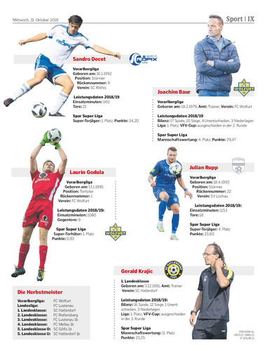 Die Hinrunde ist beendet, die Herbstmeister sind gekürt. Eine Auswahl an Top-Spielern und Top-Trainern im Unterhaus samt