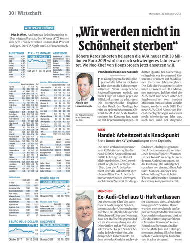 Höhere Kerosinkosten belasten die AUA heuer mit 38 Millionen Euro. 2019 wird ein noch schwierigeres Jahr erwartet. Wo Neo-Chef von Hoensbroech jetzt ansetzen will.