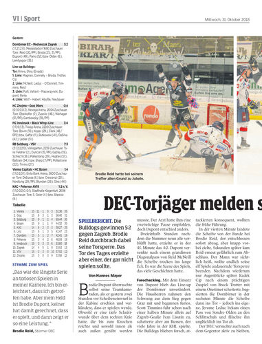 Spielbericht. Die Bulldogs gewinnen 5:2 gegen Zagreb. Brodie Reid durchbrach dabei seine Torsperre. Das Tor des Tages erzielte aber einer, der gar nicht spielen sollte.