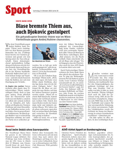 AM SCHAUPLATZ. Wien feiert ein verhaltenes Tennisfest vor dem nächsten Lockdown. Von Alexander Tagger