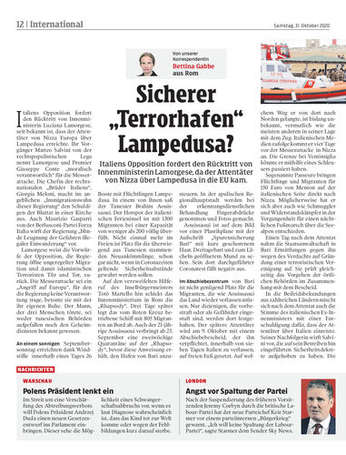Italiens Opposition fordert den Rücktritt von Innenministerin Lamorgese, da der Attentäter von Nizza über Lampedusa in die EU kam.