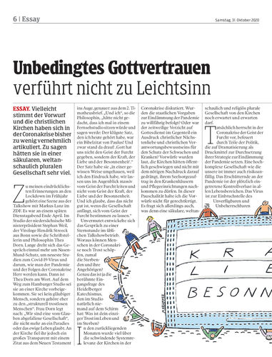 ESSAY. Vielleicht stimmt der Vorwurf und die christlichen Kirchen haben sich in der Coronakrise bisher zu wenig vernehmlich artikuliert. Zu sagen hätten sie in einer säkularen, weltanschaulich pluralen Gesellschaft sehr viel.