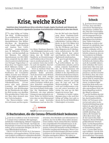 Inmitten einer beispiellosen Krise schreiben Google, Apple, Facebook und Amazon als Pandemie-Profiteure sagenhafte Gewinne. Kartellwächter erhöhen jetzt aber den Druck.