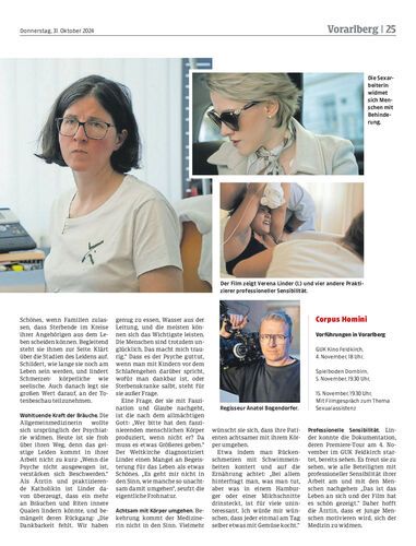 Verena Linder ist praktische Ärztin in Frastanz. Anatol Bogendorfer hat sie für seinen neuen Film „Corpus Homini“ bei ihrer Arbeit am Menschen begleitet. Die NEUE sprach mit ihr über den Film, Gott, das Leben und Sterben.