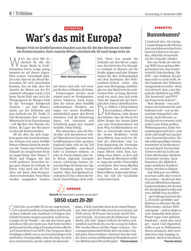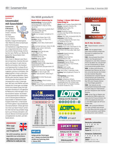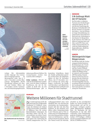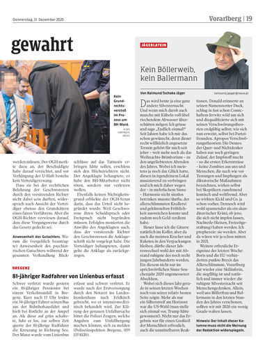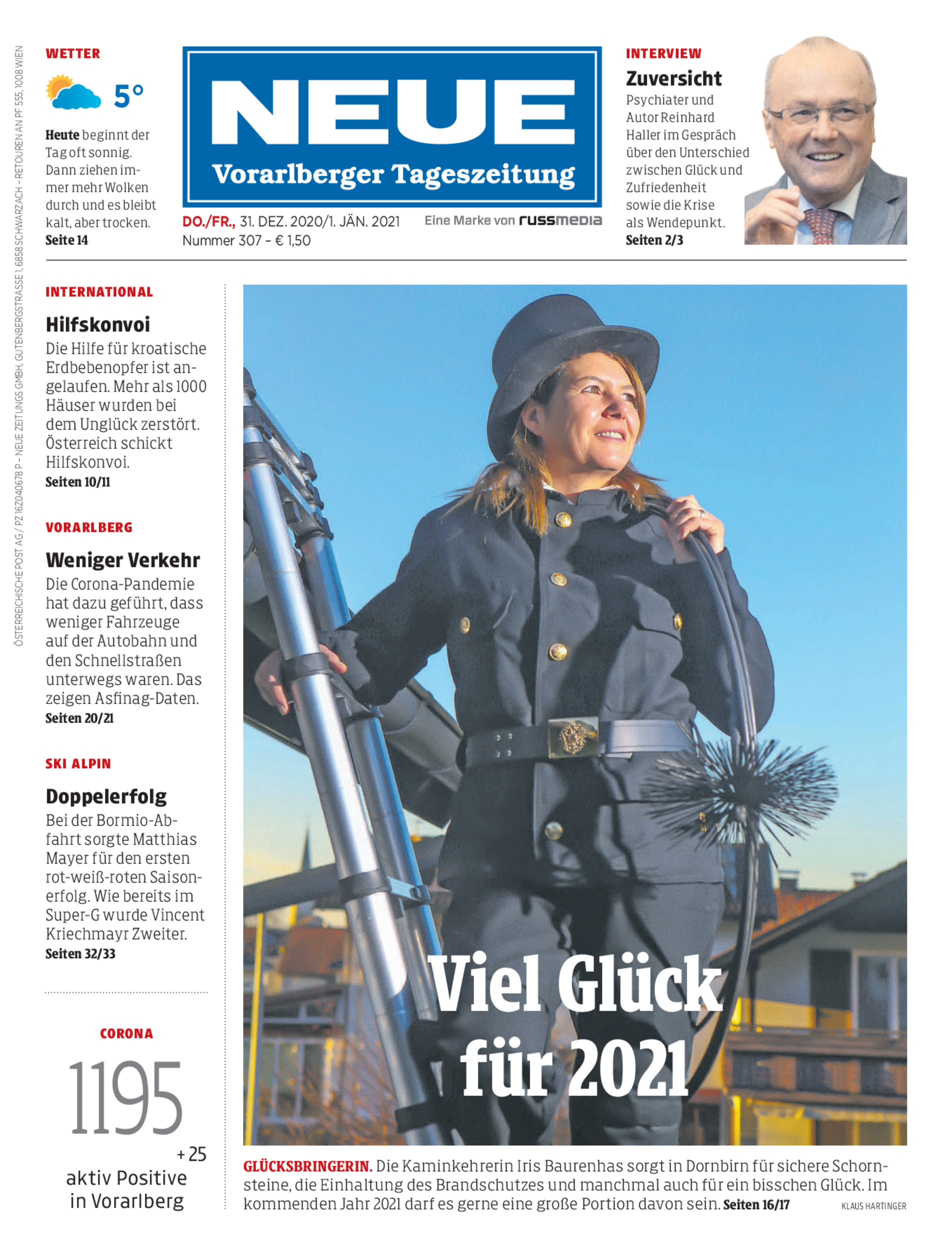 Glücksbringerin. Die Kaminkehrerin Iris Baurenhas sorgt in Dornbirn für sichere Schornsteine, die Einhaltung des Brandschutzes und manchmal auch für ein bisschen Glück. Im kommenden Jahr 2021 darf es gerne eine große Portion davon sein. Seiten 16/17 Klaus Hartinger