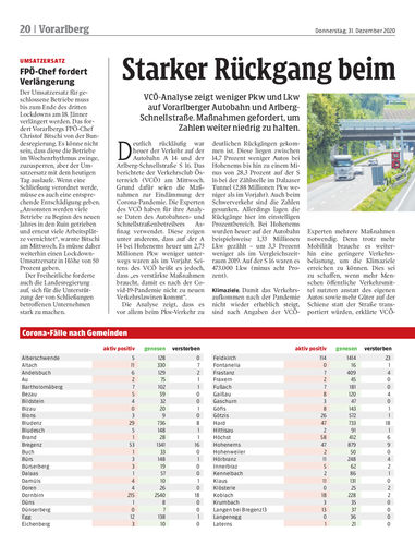 VCÖ-Analyse zeigt weniger Pkw und Lkw auf Vorarlberger Autobahn und Arlberg-Schnellstraße. Maßnahmen gefordert, um Zahlen weiter niedrig zu halten.