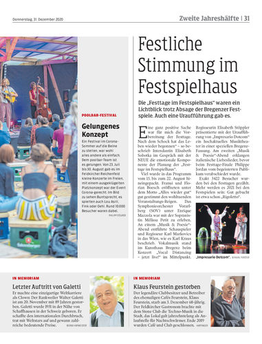 Die „Festtage im Festspielhaus“ waren ein Lichtblick trotz Absage der Bregenzer Festspiele. Auch eine Uraufführung gab es.