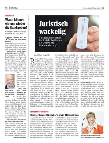 Verfassungsrechtler Funk sieht Freitesten als „rechtliche Gratwanderung“.