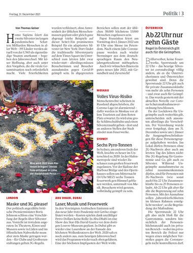 Zum zweiten Mal würfelt die wütende Pandemie Silvester durcheinander. In aller Welt wird das neue Jahr in stark verkleinerten Feiern bzw. pandemisch adaptiertem Rahmen empfangen, wie ein Überblick zeigt.