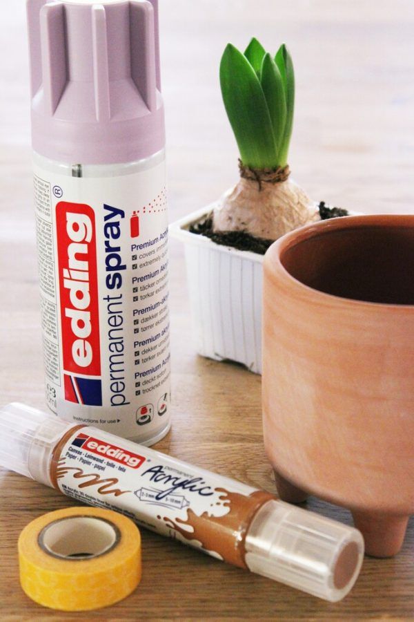 Für das Sprühen mit dem Lack unbedingt nach draußen gehen. Dafür den Topf am besten in einen großen Karton stellen, der an einer Seite mit einem Cuttermesser