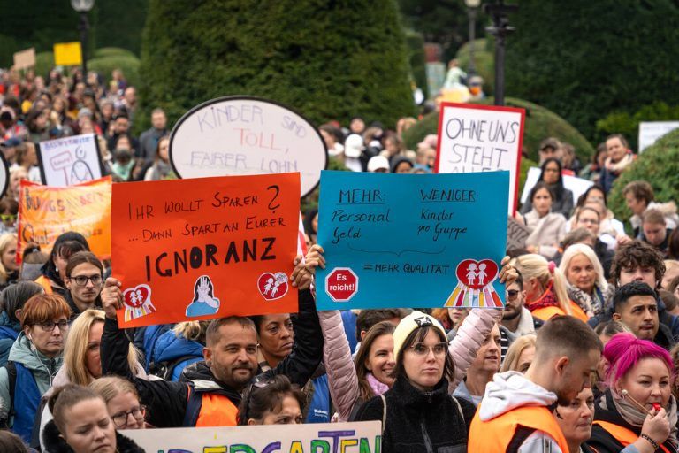 Unter dem Motto „Es reicht – ein Gesetz für alle!“ setzten über 4000 Beschäftigte der Wiener elementaren Bildungs- und Betreuungseinrichtungen und Horte mit einer Betriebsversammlung zwischen Museen in Wien ein starkes Zeichen. Trotz erster positiver Veränderungen bestehe wei