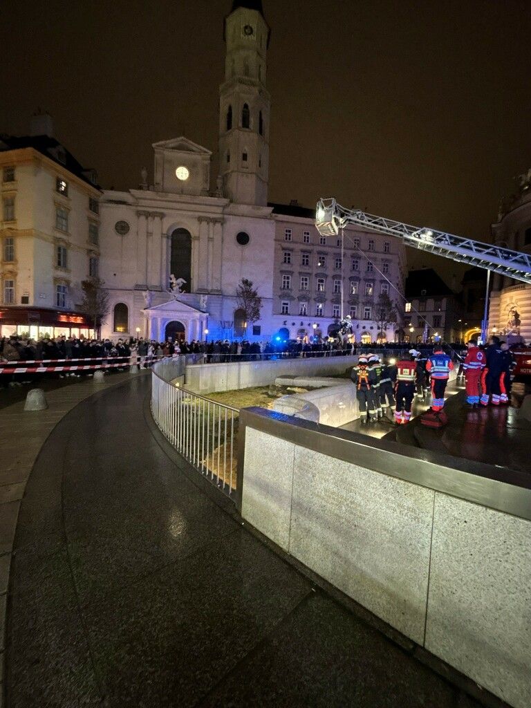 Zu einem ungewöhnlichen Rettungseinsatz ist es am Freitagabend am Michaelerplatz in der Wiener Innenstadt gekommen. Laut Polizei war ein 37-Jähriger gegen 18 Uhr vermutlich über die Brüstung an der historischen Ausgrabungsstätte in die Tiefe gestürzt. Augenze