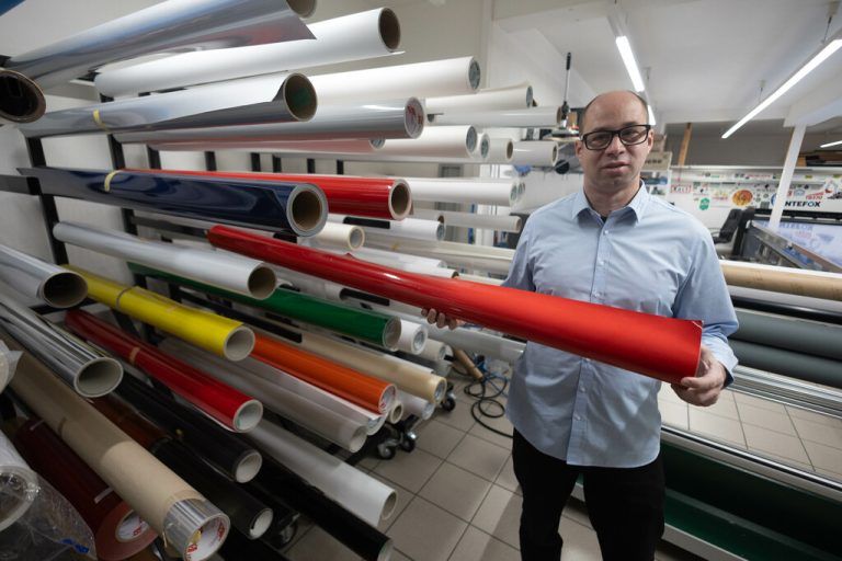 Ob Banner, Aufkleber oder Autofolien. Der Lustenauer Jürgen Grabher bedruckt fast alles. Jedes Material, jeder Druckinhalt hat seine eigenen Bedingungen, die man kennen und berücksichtigen muss. Grabher ist froh, dass er als Ein-Mann-Unternehmer jeden Auftrag selbst in die Hand nehmen kann.