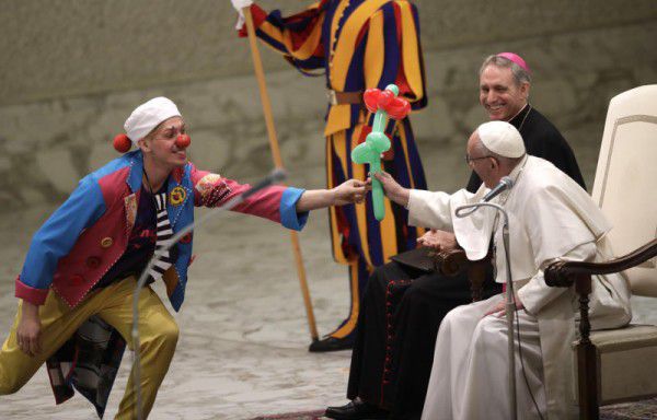 Am Ende der Generalaudienz auf dem Petersplatz veranstaltete eine Gruppe von Zirkuskünstlern eine Aufführung für den Papst. Franziskus spendete viel Applaus und erhielt eine kleine Aufmerksamkeit.