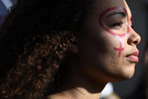 Eine Frau mit dem weiblichen Gender-Piktogramm bei einer Demonstration anlässlich des 40. Weltfrauentags in Marseille. AFP