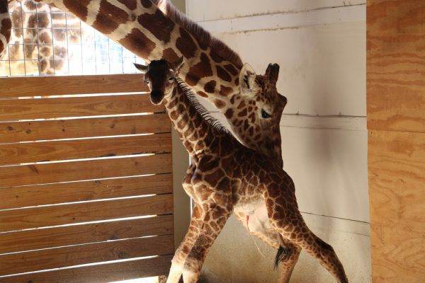 Über Nachwuchs bei den Giraffen freute sich Tierpark-Besitzer Jordan Patch. Im „Animal Adventure Park“ in Binghampton, Bundesstatt New York, kam am Wochenende die männliche Giraffe Tajiri zur Welt. Auch Giraffen-Mama April schien ihre Freude zu haben und liebkoste den Kleinen. AFP