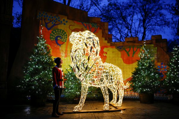 Auch der Zoo in London wird weihnachtlich geschmückt – unter anderem mit dieser beleuchteten Löwenkulptur.
