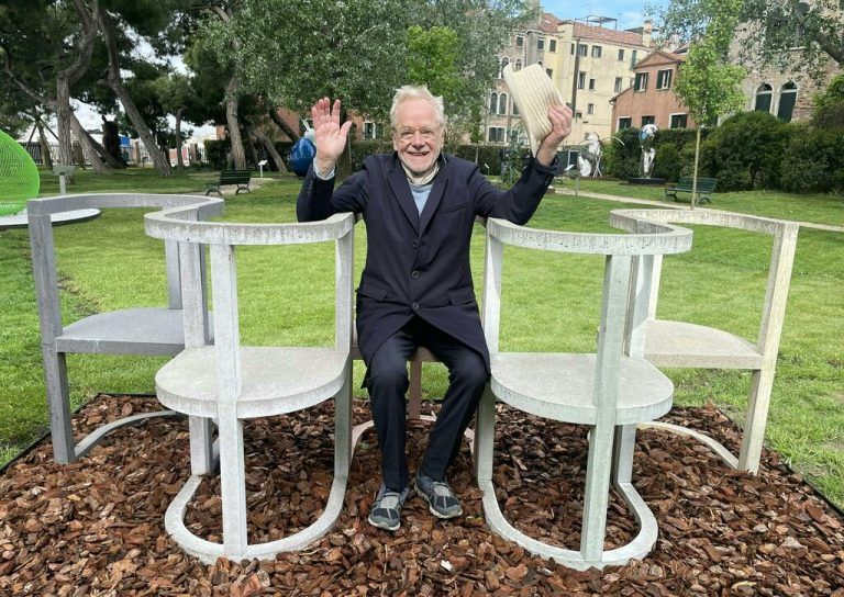 Österreich ist abseits der Kunstbiennale bei der vom European Cultural Centre in Venedig organisierten Kunstschau „Personal Structures“ vertreten. Im Skulpturengarten des Giardino Marinaressa hat Tone Fink einen „fünf-bändigen Stuhl“ aufgestellt.