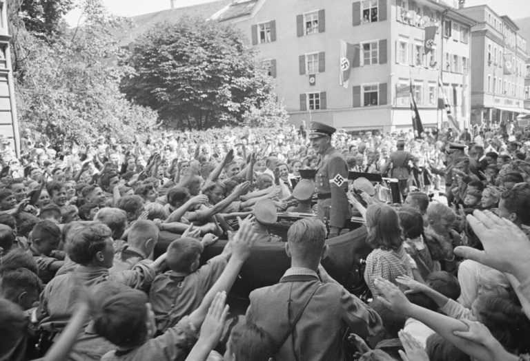 Die Plätze sind voller Menschen, nur Individuen sieht man keine. Unzählige Hände sind zum Hitlergruß ausgestreckt, Hakenkre