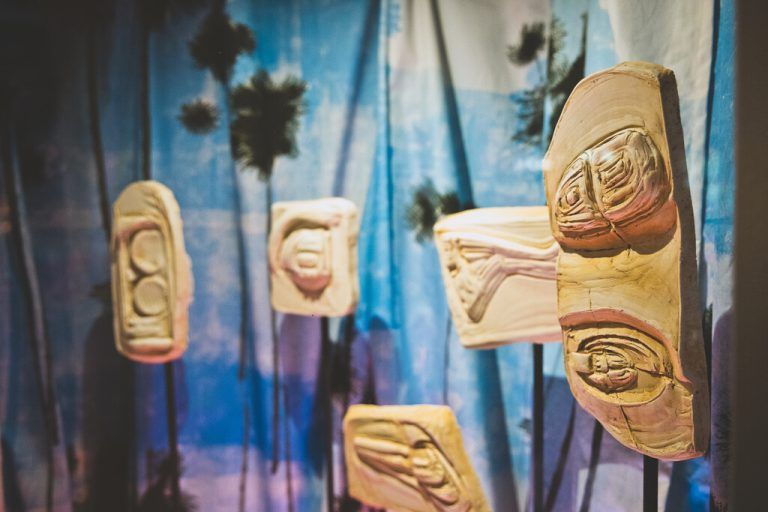 Nach Roland Adlassniggs „Stein des Anstoßes“ schmückt „Escalade“ von Pirmin und Severin Hagen das Schaufenster der Galerie beim Feurle in Feldkirch. Der Hintergrund zeigt eine Palmenlandschaft auf Schnee-Camouflage-Planen, während die Skulpturen von Autorücklichtern in