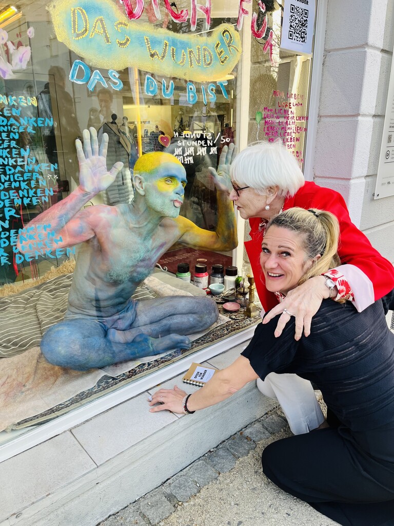 Der als Clown Pompo bekannte Künstler Stefan Damm verbrachte vergangenes Wochenende 50 Stunden in einem Schaufenster am Bregenzer Kornmarktplatz. Getrennt durch eine Glasscheibe, aber in Sichtweite mit dem Publikum verbunden, rückte die Performance die alltägliche Gegen