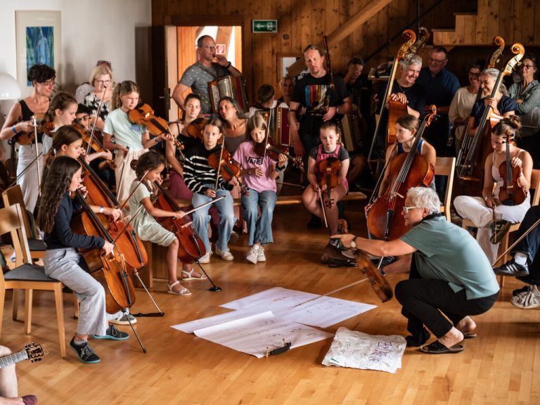 Die Radix Musikwerkstatt unter der Leitung von Evelyn Fink-Mennel war ein Highlight des Walserherbst, der am 6. September zu Ende ging. Nach intensiven Proben in der Propstei St. Gerold, mit zuvor unerreichten Teilnehmerzahlen, brachten fast 100 Musiker den Blonser Dorfplatz beim Radix-Abschlu