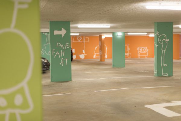 Das Dornbirner Büro für DesignKommunikation Sägenvier erarbeitet seit vielen Jahren regionale und überregionale Signaletik-Projekte. Nun gab es erneut internationale Auszeichnungen. Das Leitsystem für den Dornbirner Kindergarten Markt (im Bild die öffentliche Tiefgarage) erhält den Yel