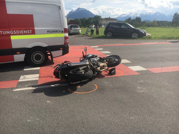 Zwei Verletzte forderte ein Verkehrsunfall gestern in Röthis. Ersten Angaben zufolge hielt eine Autofahrerin an einem Stoppschild an einer Kreuzung zunächst an, fuhr dann aber weiter und übersah dabei ein Motorrad, auf dem ein Ehepaar (beide 59) saß. Es kam zur Kollision, wodurch der Motorradfahrer