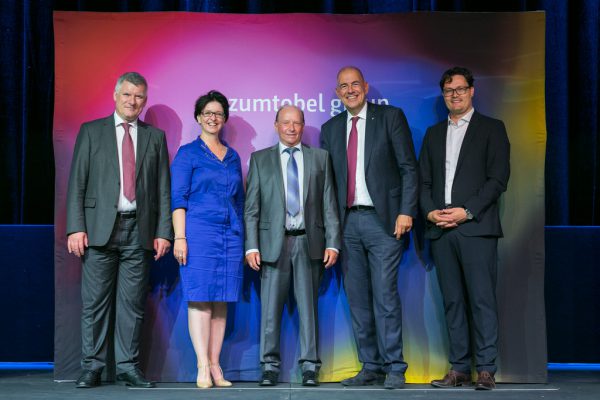 Im Rahmen eines Festabends im Haus der Messe in Dornbirn wurden vergangene Woche insgesamt 217 Mitarbeiter der Zumtobel Group und ihrer Marken geehrt. Alfred Felder (COO Zumtobel Group), Karin Sonnenmoser (CFO Zumtobel Group), Ulrich Schumacher (CEO Zumtobel Group) und Christian Ranach