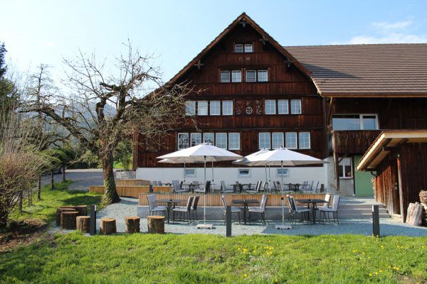 Klein und urig-gemütlich – so wirkt der Tübli-Gastraum im schweizerischen Altstätten. Das unter Denkmalschutz stehende Restaurant verfügt über eine Zimmerhöhe von nur zwei, die Türstöcke sogar nur über 1,80 Meter. Wenn der Chefkoch sein Küchenreich verlässt, muss er sich fast bücken.