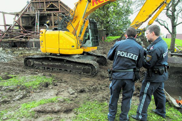 Ein Baggerfahrer war gestern Nachmittag in Übersaxen mit dem Abbruch eines Hauses beschäftigt. Im Zuge dessen machte er gegen 15 Uhr eine Drehung. Allerdings stand dort ein 21-jähriger Arbeiter, der mit dem Sortieren beschäftigt war. Dieser wurde seitlich erfasst und von der Raupe