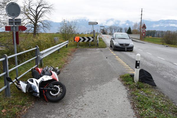 Zu einer Kollision zwischen einem Auto und einem Motorrad ist es am Mittwoch in Diepoldsau (Kanton St. Gallen) gekommen. Die 17-jährige Lenkerin des Motorrads wurde dabei unbestimmten Grades verletzt. Sie wurde in ein Spital geflogen. Am Fahrzeug der 17-Jährigen entstand Total-, a