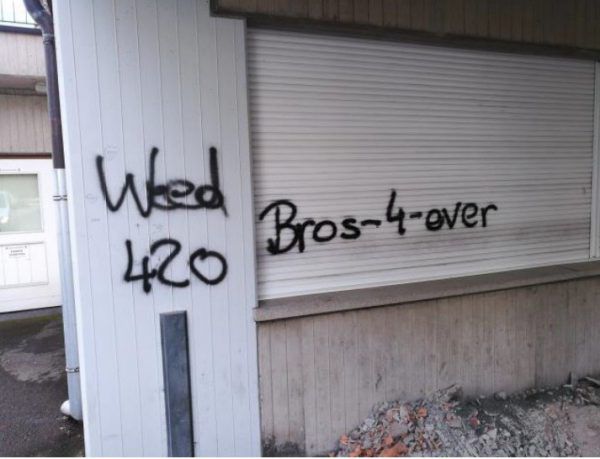 Zwei bislang Unbekannte haben in den vergangenen Tagen in Feldkirch-Stadt an mehreren Orten Mauern, Fenster, Vitrinen, Zäune und Rollläden mit schwarzer Farbe und unterschiedlichen Schriftzügen und Ziffern besprüht. Betroffen waren unter anderem das Montforthaus, die Arbeiterkammer u