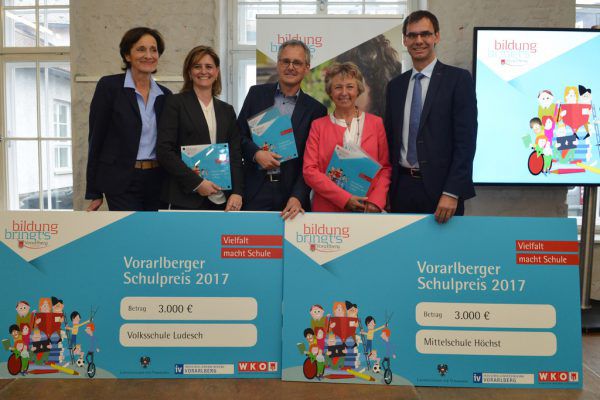 Erstmals wurde heuer der Vorarlberger Schulpreis verliehen, um ausgezeichnete pädagogische Konzepte in den Fokus zu rücken. Die Hauptpreise und damit je 3000 Euro gingen an die VS Ludesch, die MS Höchst sowie die HAK/HAS Lustenau. Foto-Serra