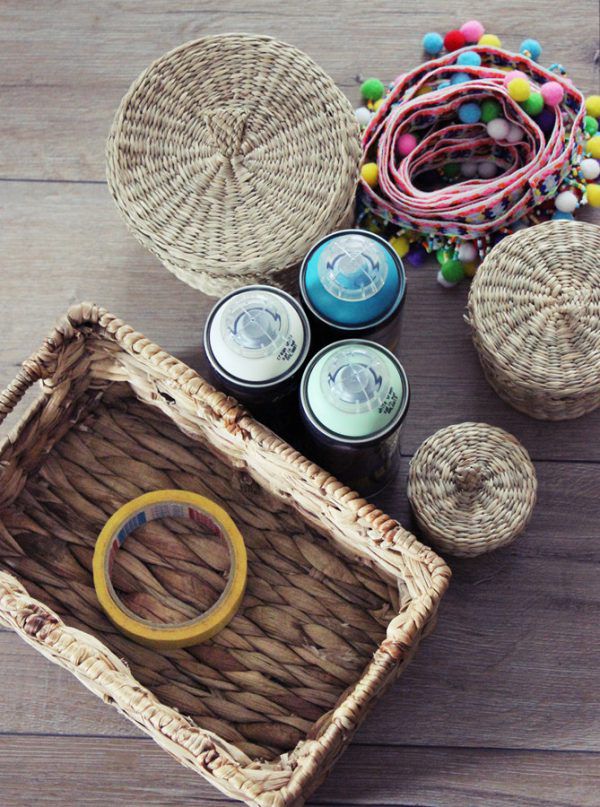 Den einen oder anderen Korb hat bestimmt jeder zu Hause. Manchmal sehen diese langweilig aus. Aufgepeppt mit etwas Farbe und buntem Band werden diese zu dekorativen Hinguckern. Voll im Trend ist der Boho-Look, ein Stil, der auf diversen Einflüssen vor allem der Hippies und der Boheme