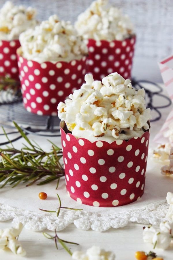 Schoko-Cupcakes mit salzigem Rosmarin-Popcorn