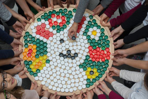 Rund 60.000 Plastikverschlüsse haben die Mädchen und Buben der Volksschule und der Neuen Mittelschule Schendlingen gesammelt. Daraus entstehen im Rahmen des Projekts „Daksch2“ (Deckelaktionskunst Schule Schendlingen) laufend neue Kunstwerke. Die jüngsten Oster- und Frühlingsbilder si