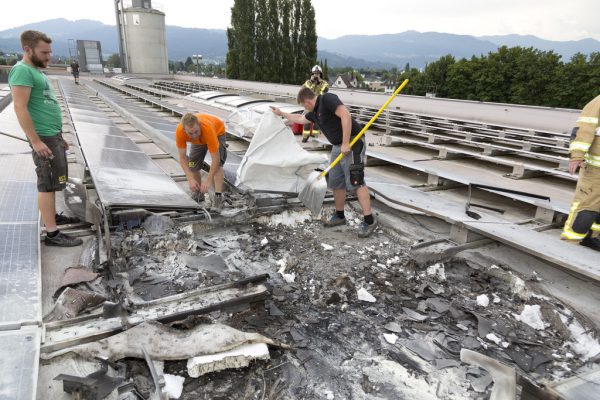 Rasch eingedämmt wurde am Mittwoch ein Brand im Bereich der Fotovoltaikanlage auf dem Dach eines Unternehmens in Lauterach. Mitarbeitern gelang es, die Flammen mittels Feuerlöscher einzudämmen. Einsatzkräfte der Feuerwehren Lauterach und Wolfurt löschten schließlich noch die letzten Gl