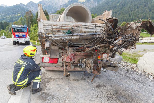 Ein Lkw-Fahrer ist am Mittwochnachmittag auf der Arlbergschnellstraße (S 16) mit dem Aufbaukran seines Fahrzeugs an einer Unterführung hängengeblieben. Dabei wurde der Kran heruntergerissen, der Fahrer erlitt beim Aufprall Verletzungen und musste mit dem Notarzthubschrauber